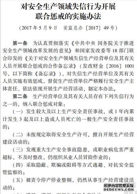對(duì)安全生產(chǎn)領(lǐng)域失信行為開展 聯(lián)合懲戒的實(shí)施辦