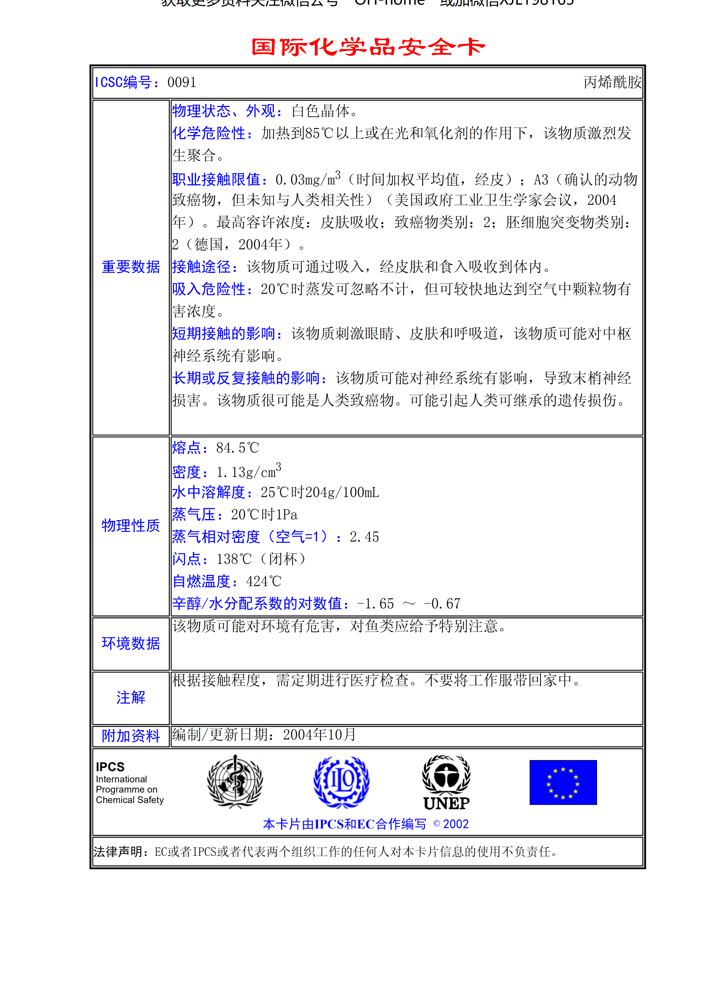 丙烯酰胺MSDS