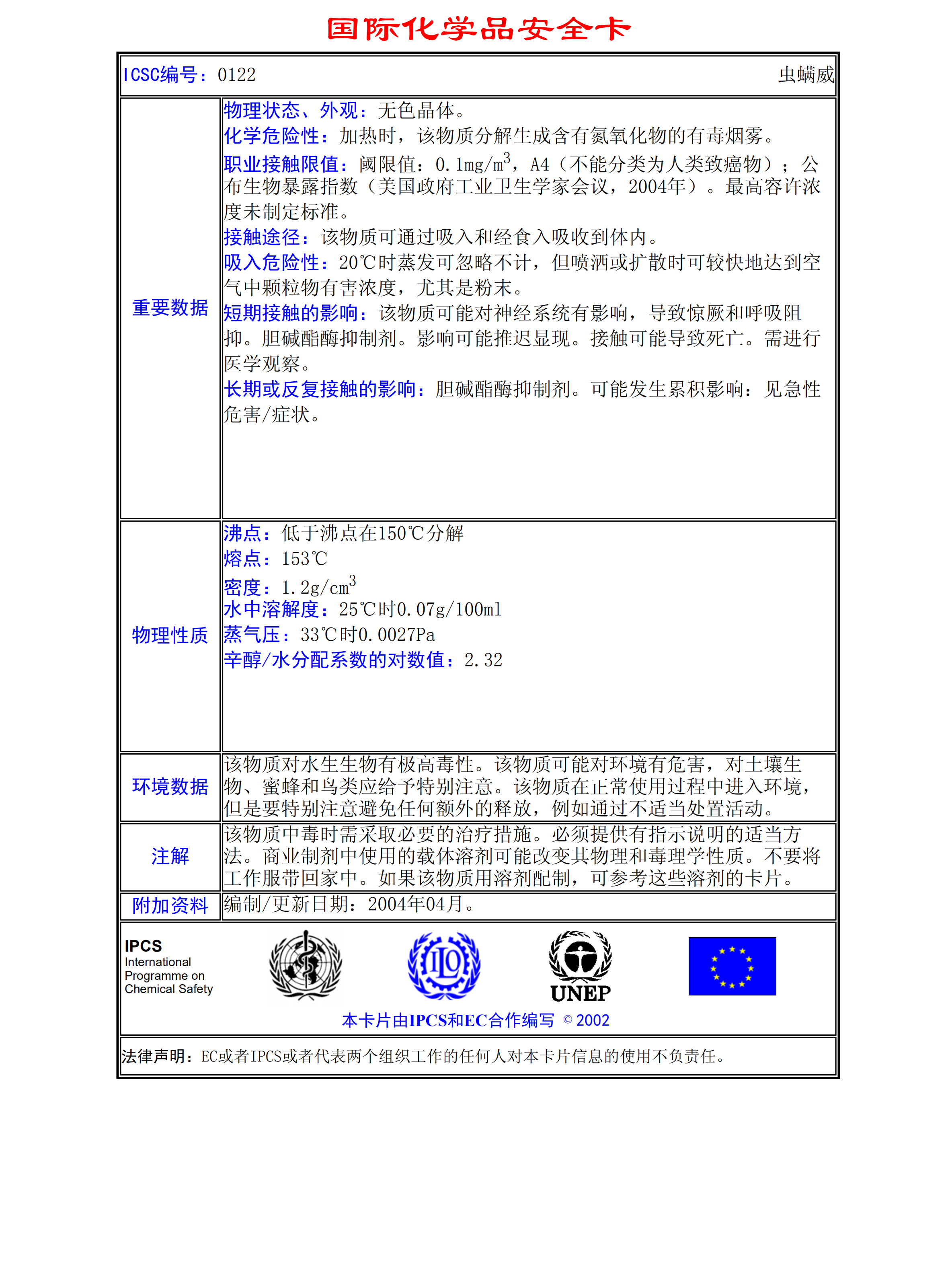 蟲螨威MSDS
