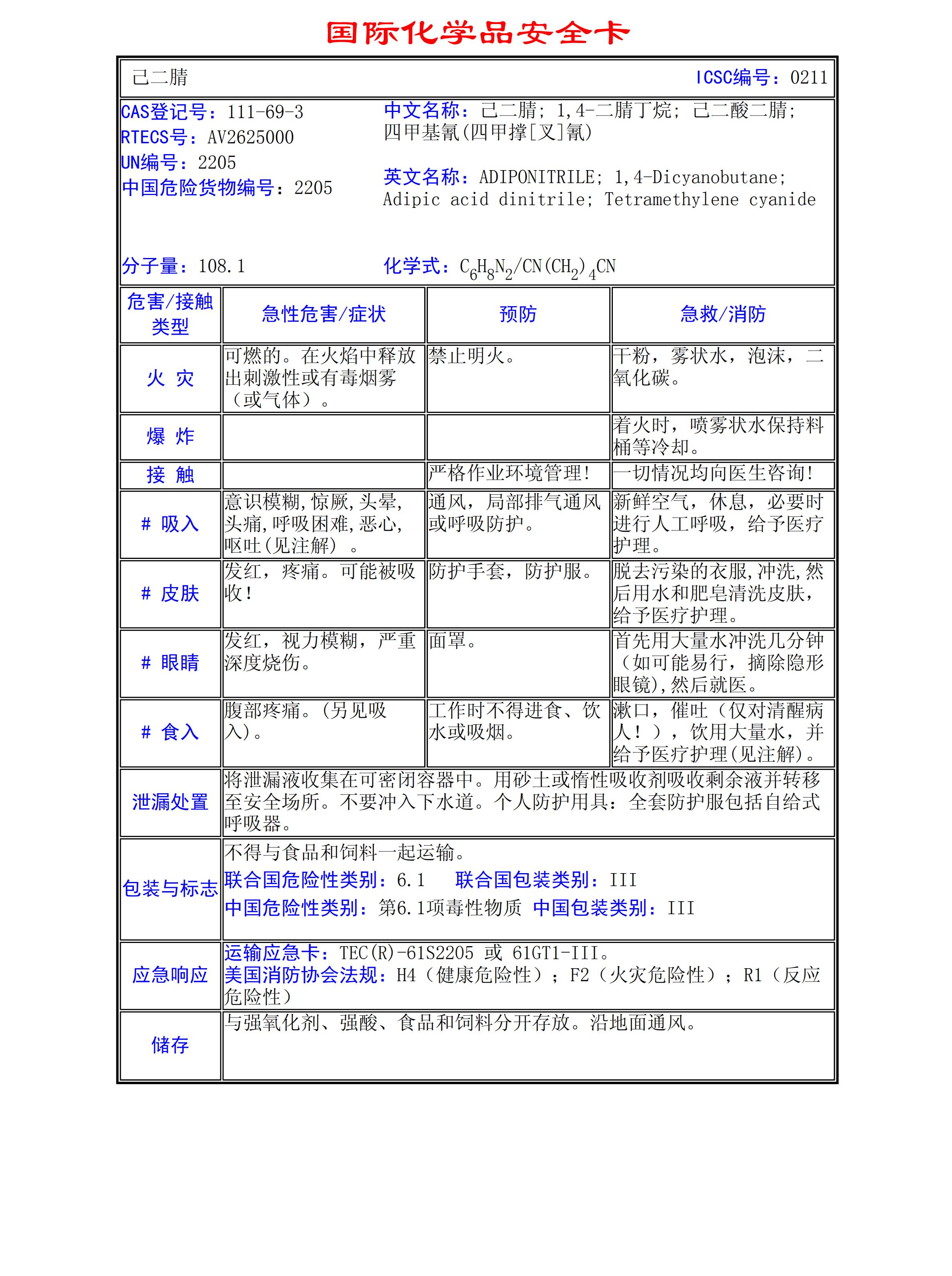 己二腈MSDS