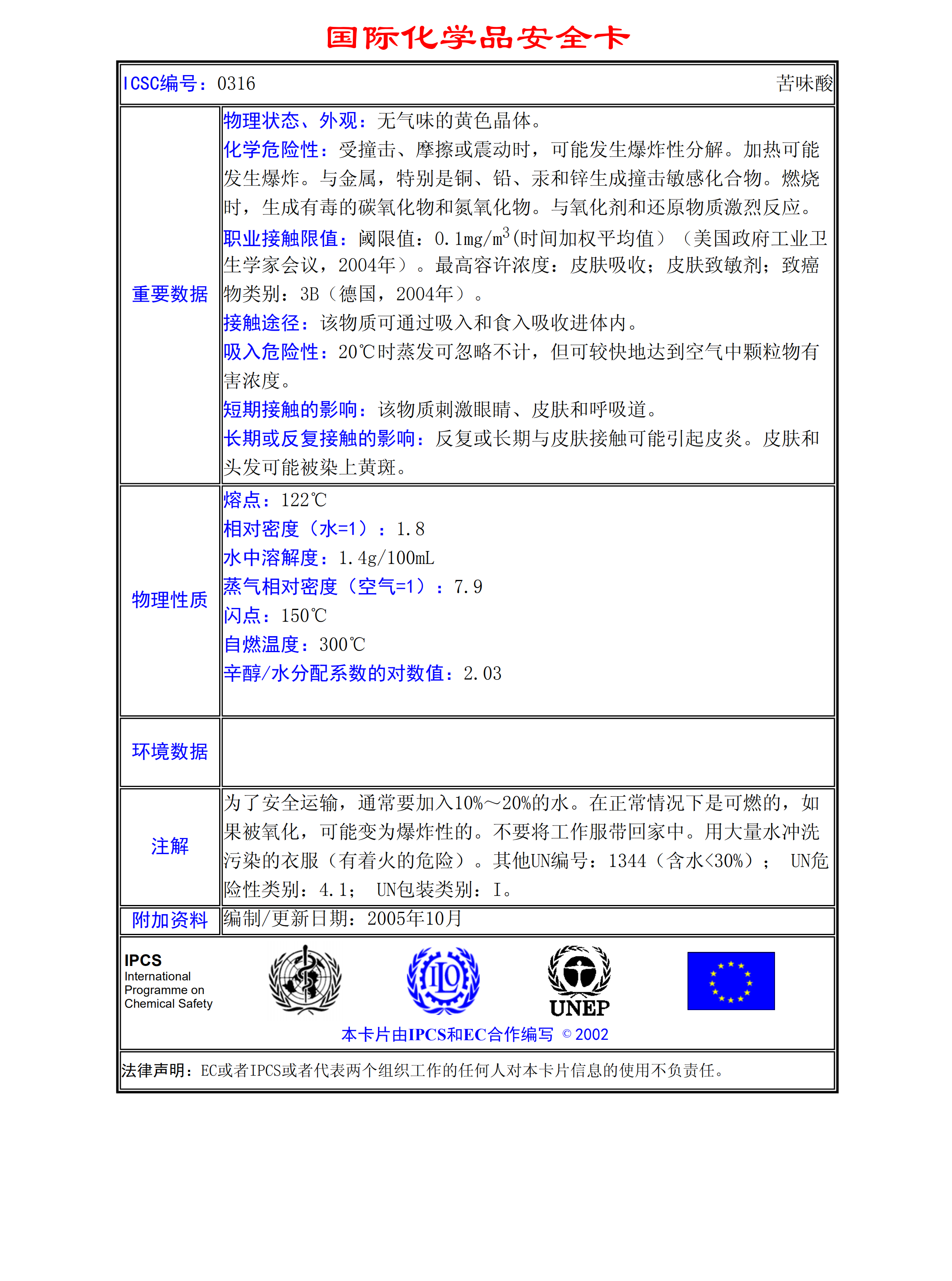 苦味酸MSDS