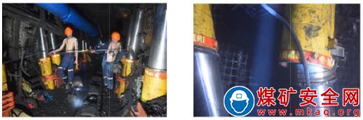 2305S 工作面支架完好,頂板完整,無明顯下沉,煤壁完整無明顯片幫;上端頭輕微底鼓約 0.3m,上幫煤壁完整,無明顯移近,支設的單體液壓支柱部分彎曲,無歪倒現(xiàn)象;下端頭及下平巷無明顯變化。