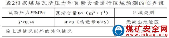 (1)區(qū)域突出危險(xiǎn)性預(yù)測(cè)采用直接測(cè)定法測(cè)定煤層瓦斯含量 W 和煤層瓦斯壓力 P,由鉆機(jī)隊(duì)施工 4 個(gè)預(yù)測(cè)孔,防突工負(fù)責(zé)現(xiàn)場監(jiān)督、采集數(shù)據(jù),出具突出危險(xiǎn)性預(yù)測(cè)報(bào)告單,經(jīng)防突隊(duì)、科、礦有關(guān)領(lǐng)導(dǎo)審核簽字確認(rèn)后執(zhí)行區(qū)域防突措施。