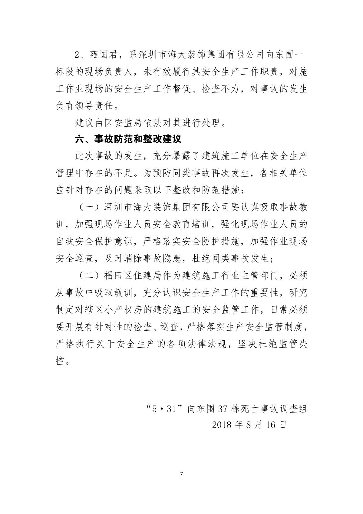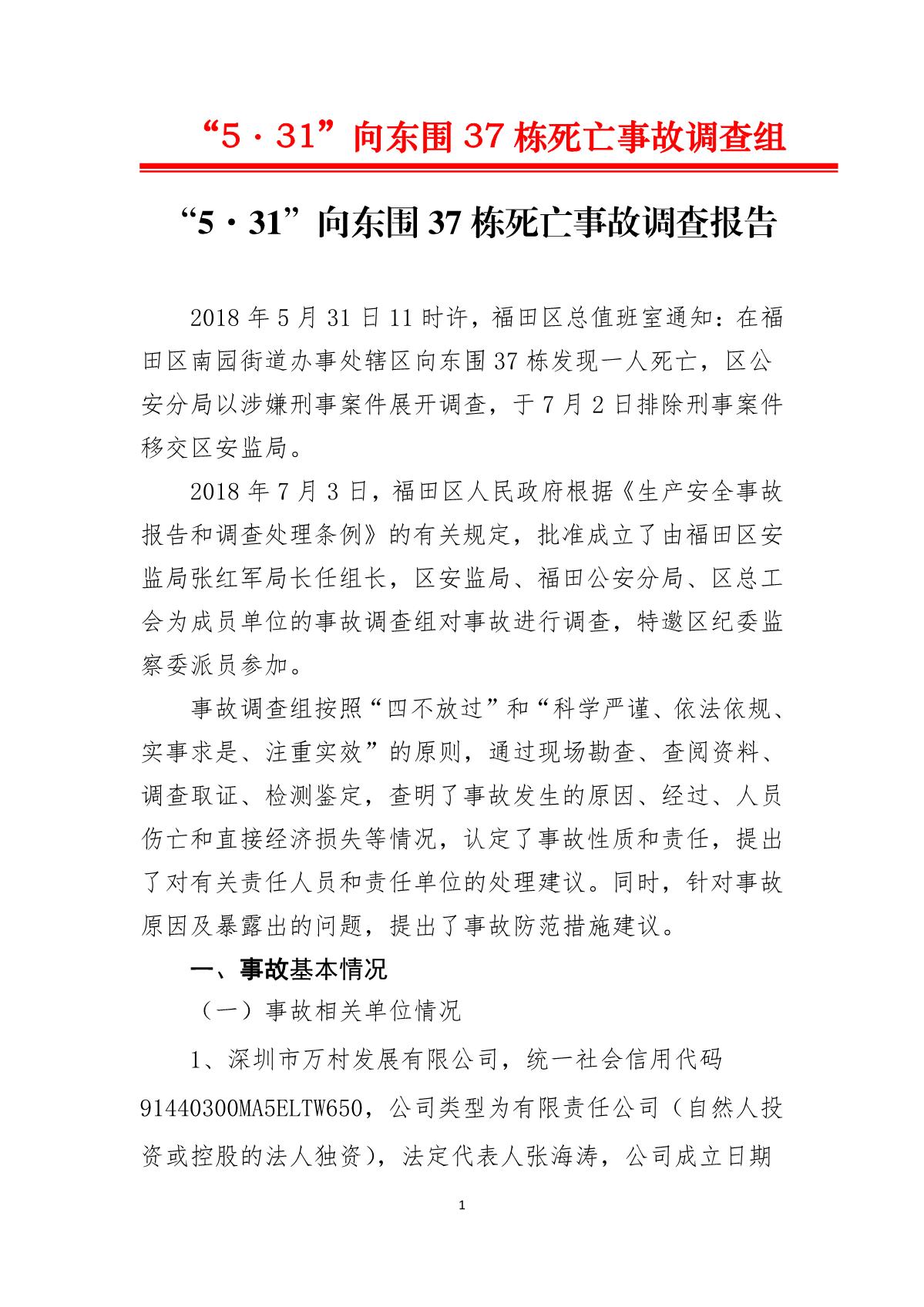 “5.31”向東圍37棟死亡事故調(diào)查報(bào)告