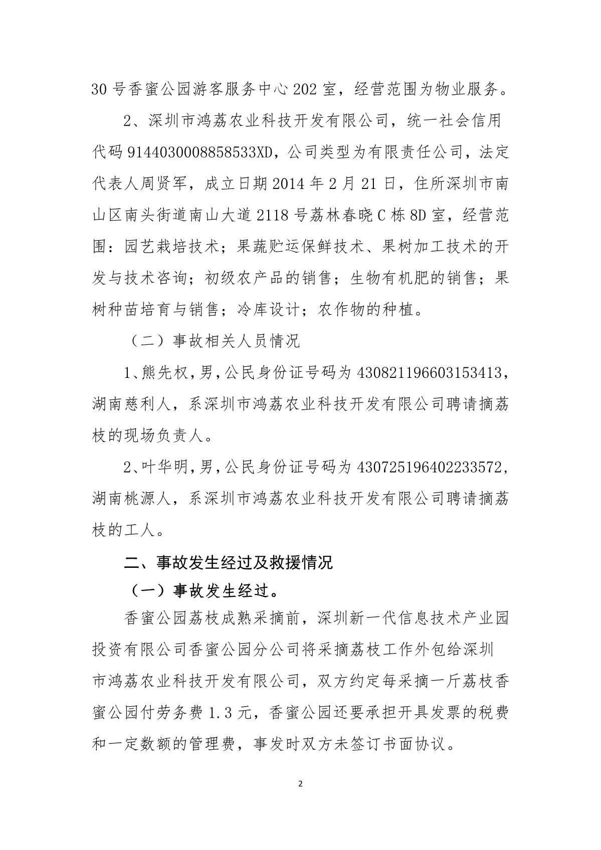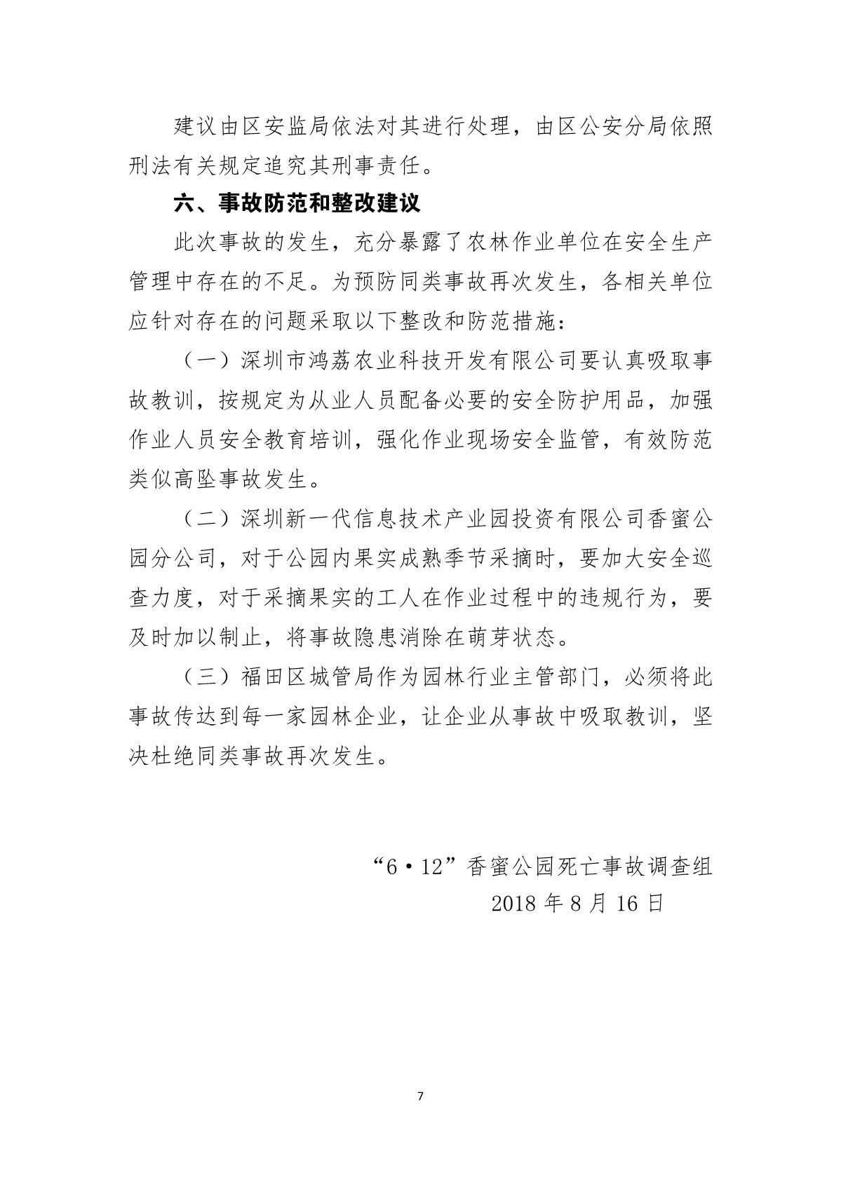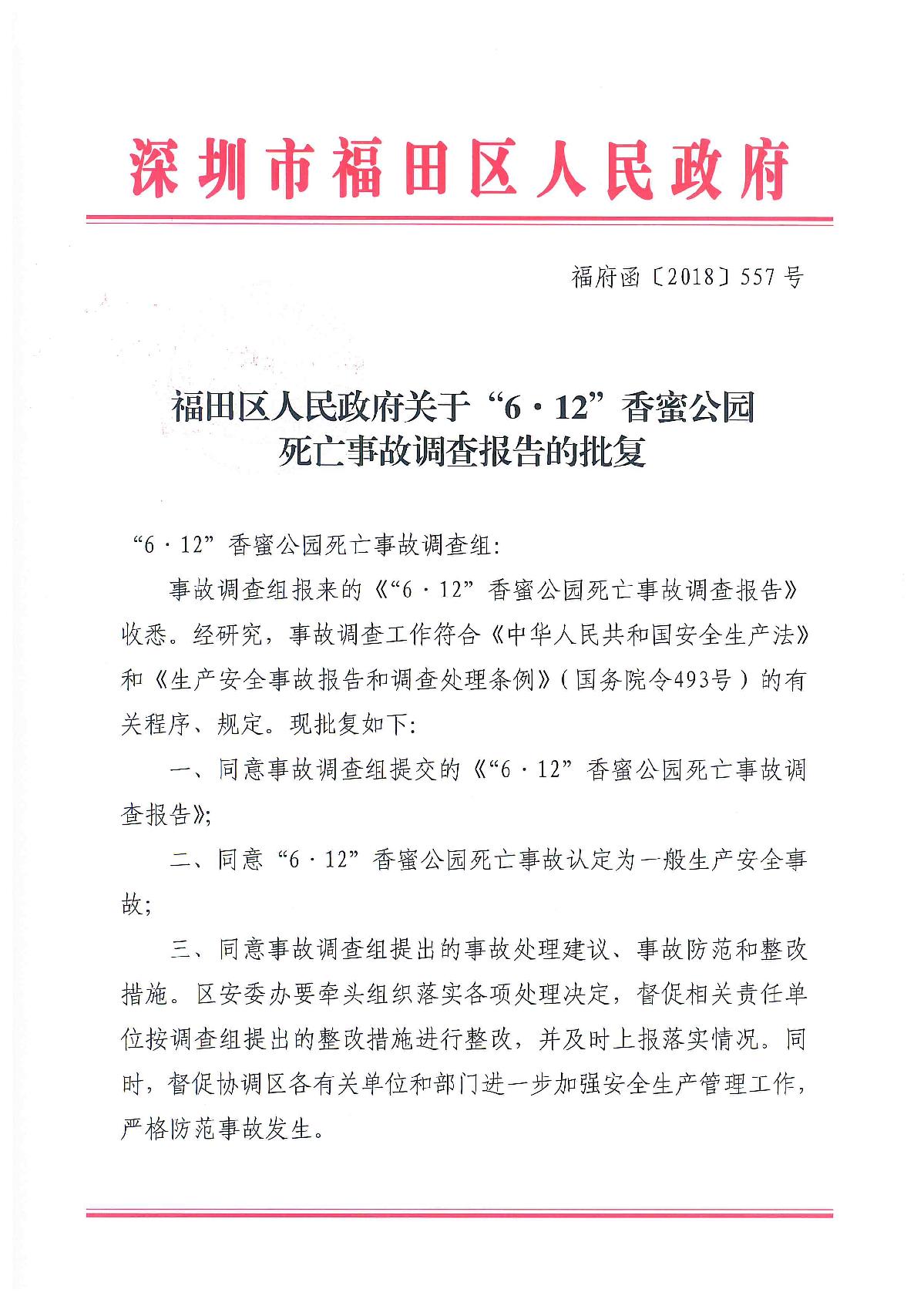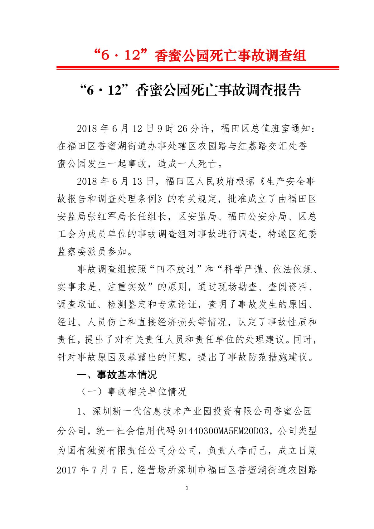 “6.12”香蜜公園死亡事故調查報告