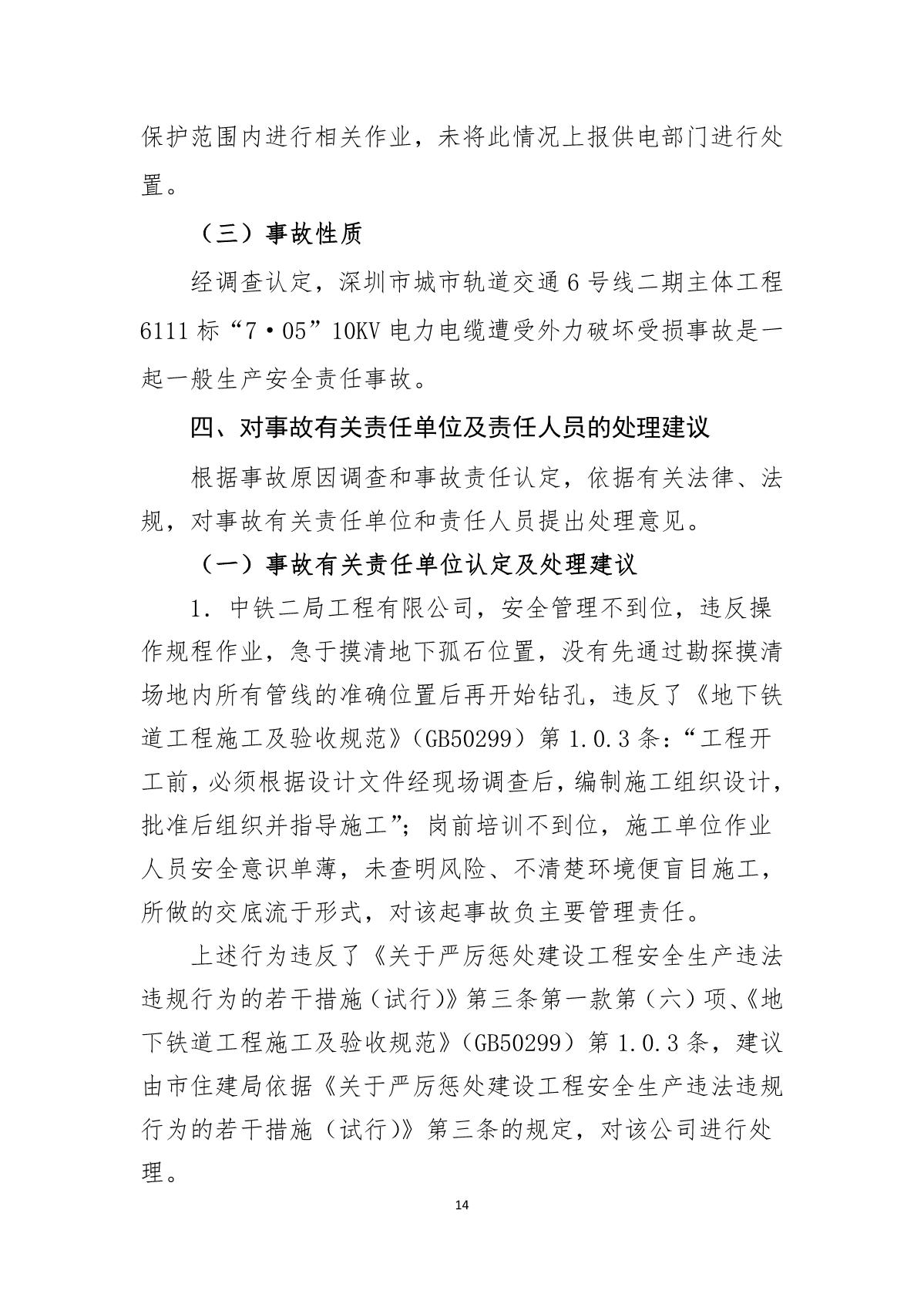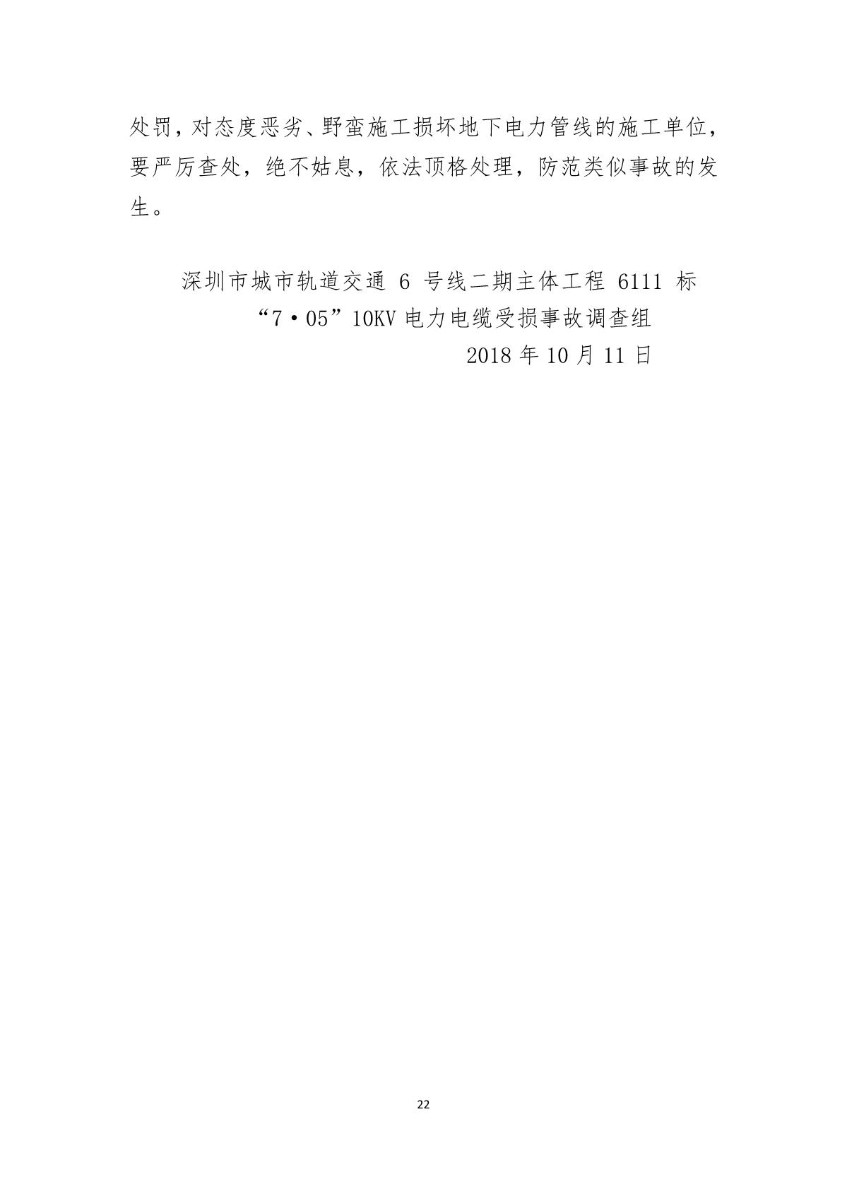 福田區(qū)人民政府關(guān)于深圳市城市軌道交通6號線二期主體工程6111標(biāo)“7.05”10kv電力電纜受損事故調(diào)查報告