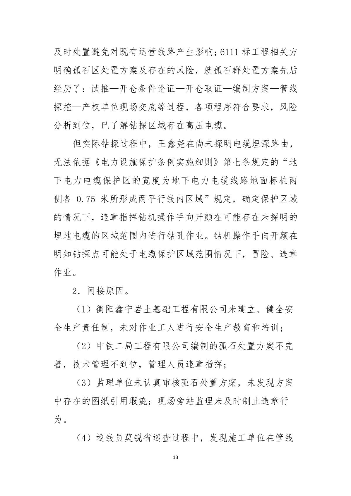 深圳市崗廈北綜合交通樞紐工程“7.07”10kv電力電纜受損事故調(diào)查報告