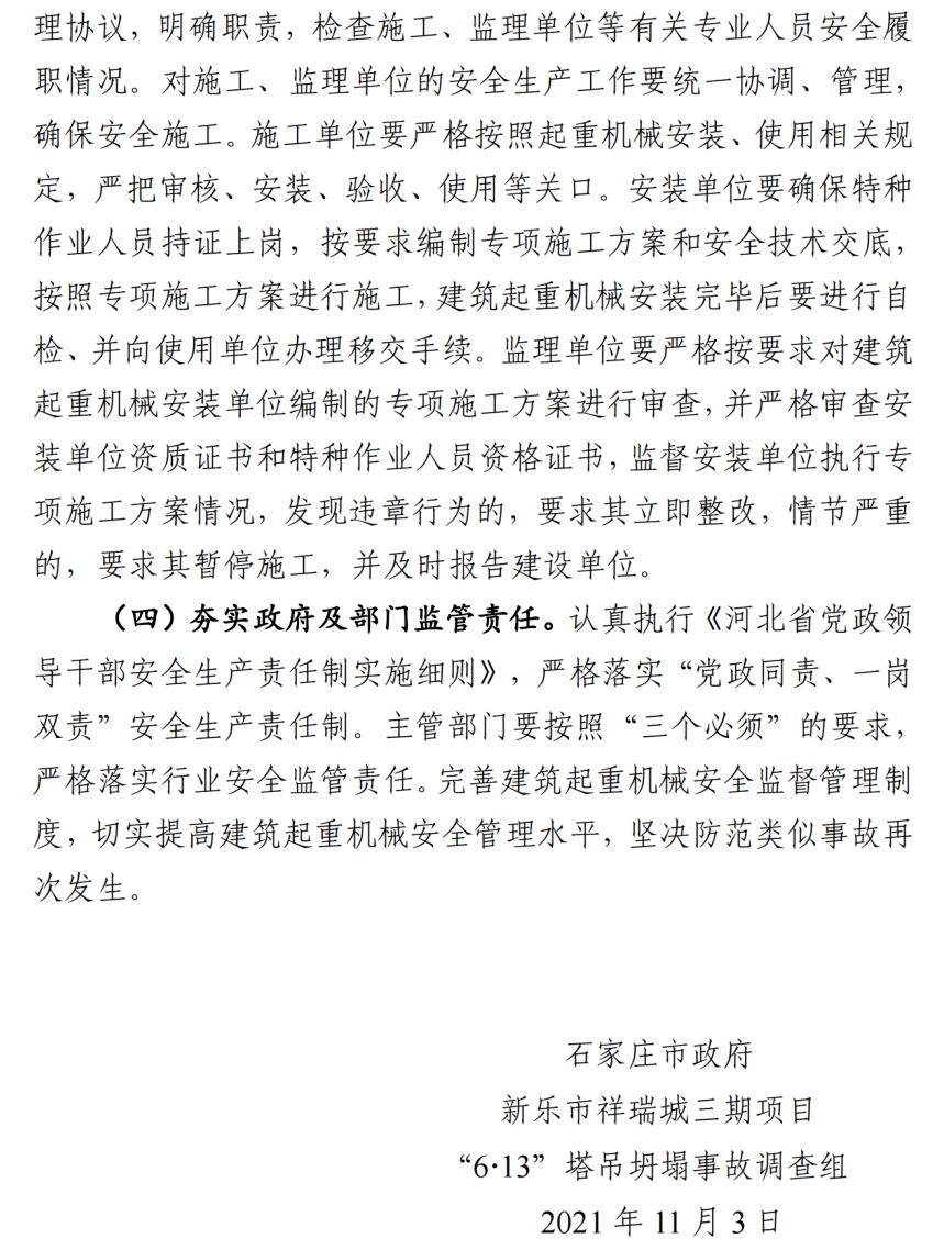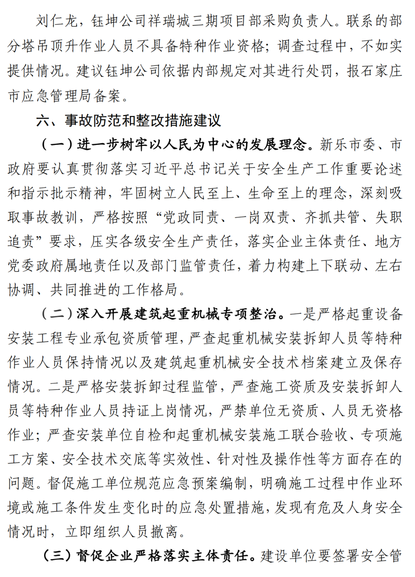 河北石家莊新樂市祥瑞城建筑工地在塔吊頂升作業(yè)事故調(diào)查報告