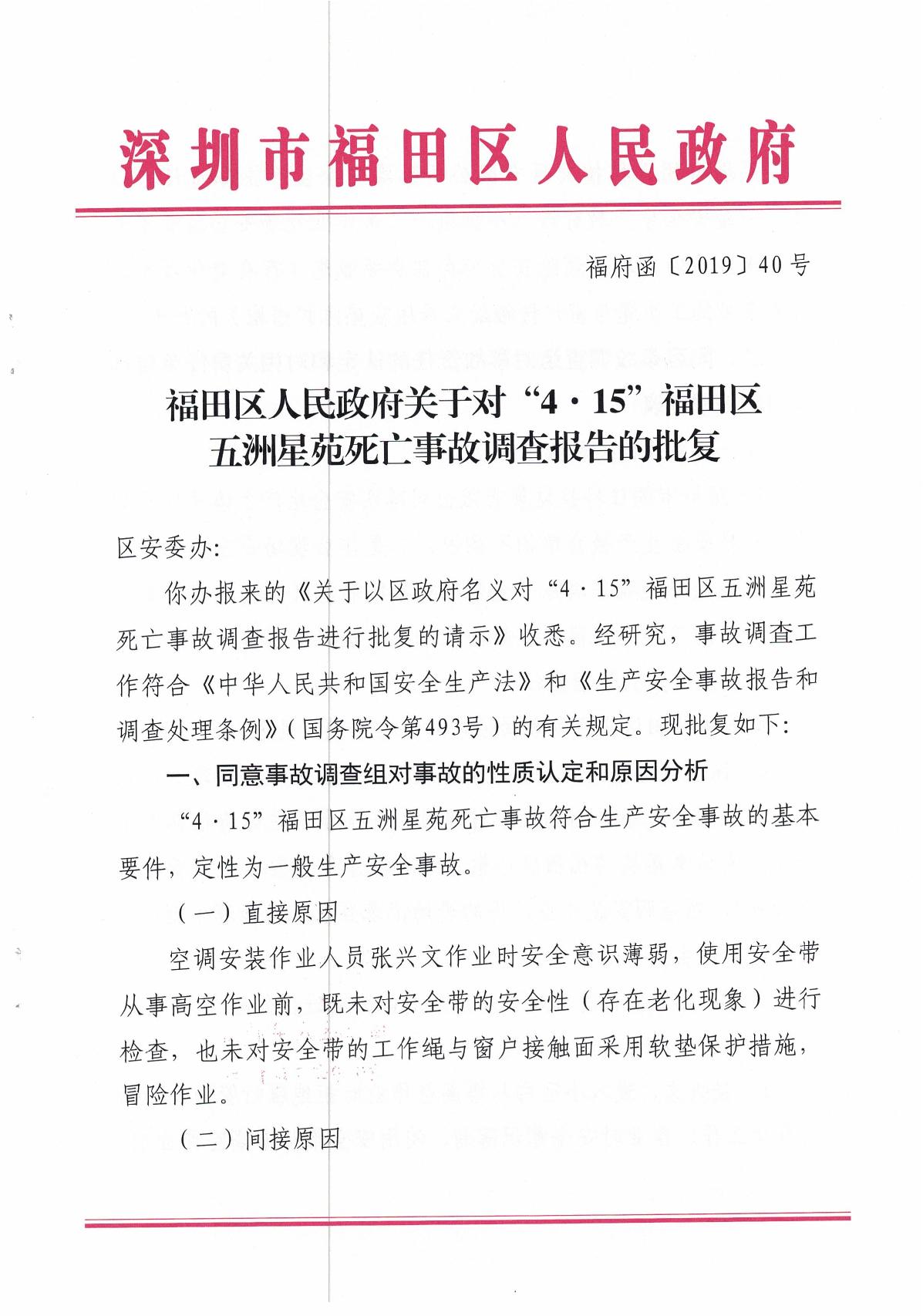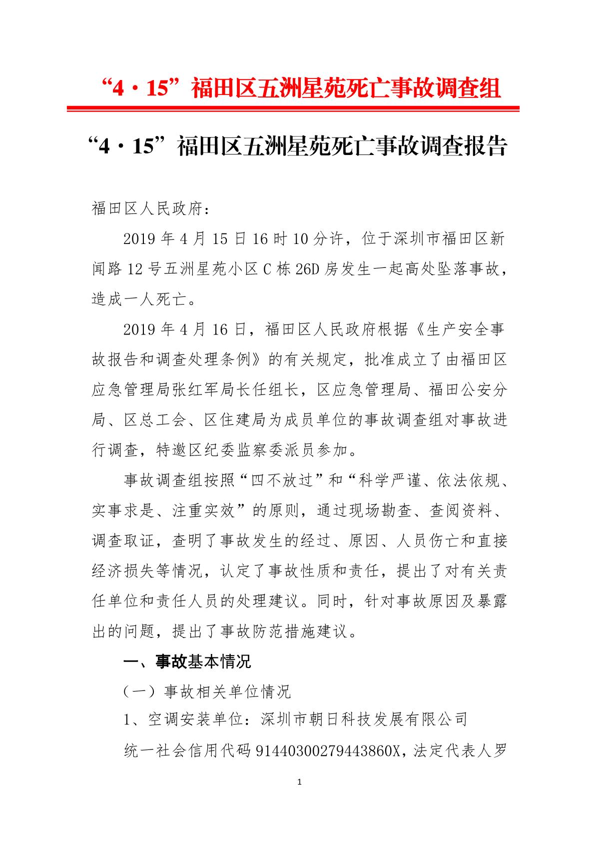 “4.15”福田區(qū)五洲星苑死亡事故調(diào)查報(bào)告