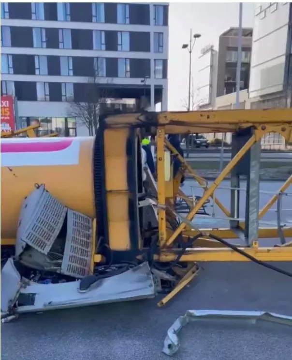 美國(guó)德克薩斯州一在建工地塔吊發(fā)生倒塌事故