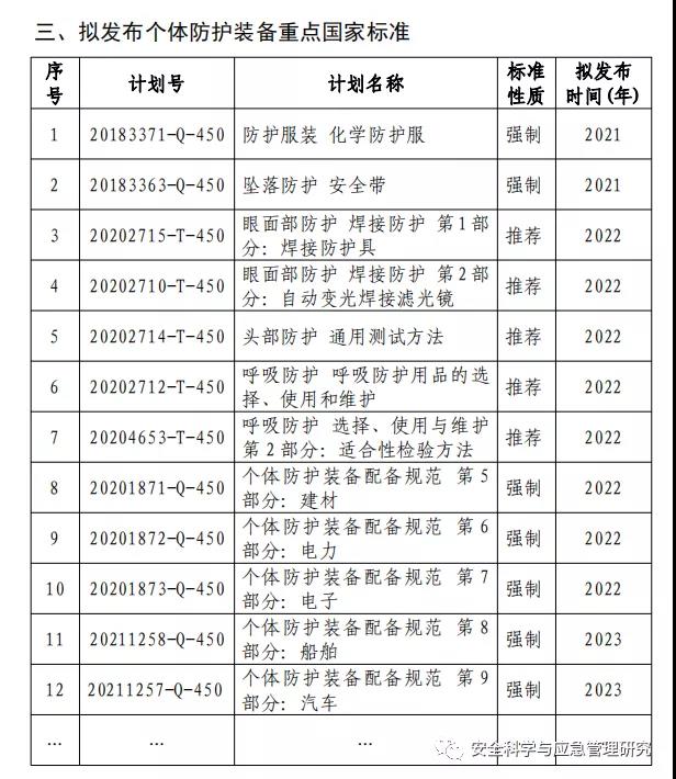 (一)集中發(fā)布實施一批個體防護裝備國家標(biāo)準(zhǔn)。